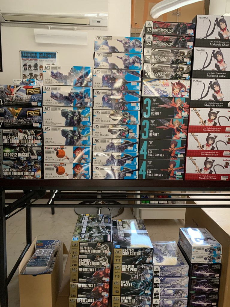 本日も棚に入らない商品は奥の机の上です。